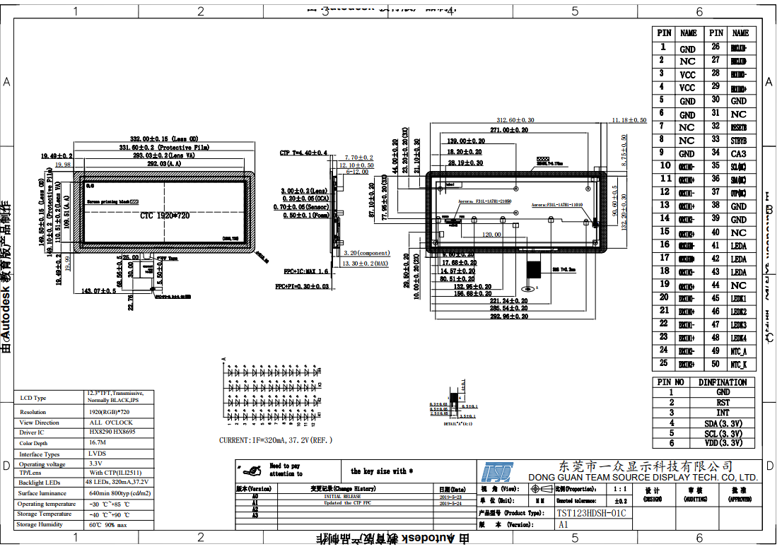 12.3寸 IPS 1920*720 带电容触摸 高亮度 车载 导航 智能仪表 手持终端LCD