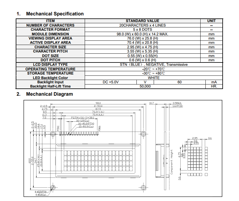 供应2004A字符点阵液晶屏 工控LCD 5V供电电压 蓝底白字 STN正显 设备仪表屏