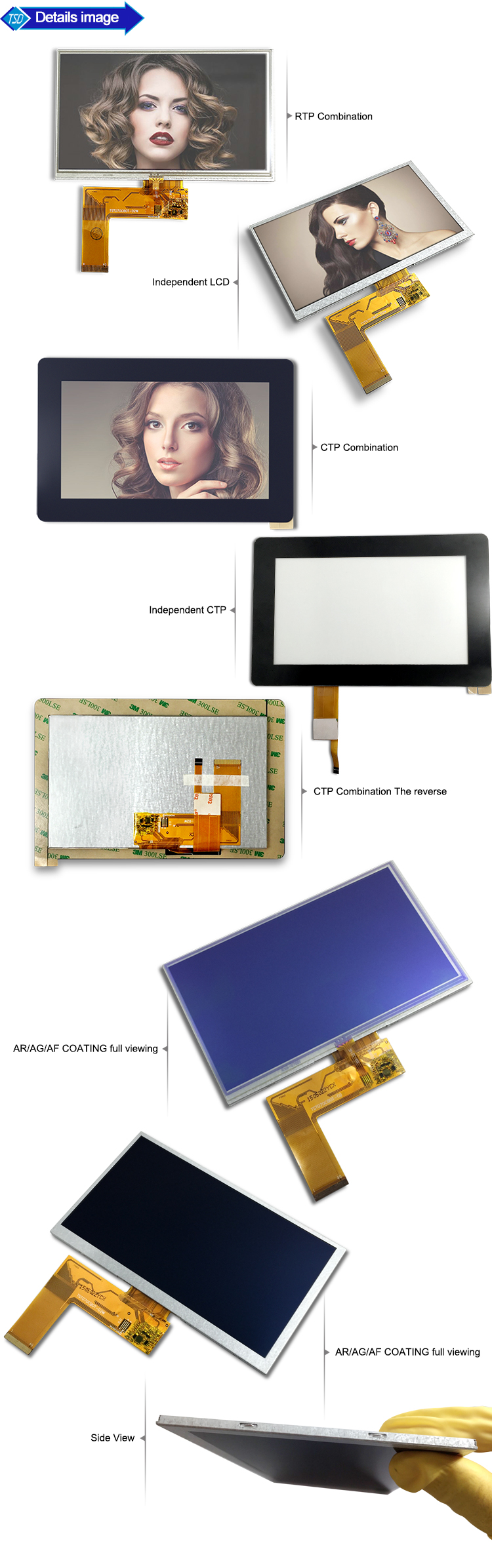 5寸TFT液晶显示屏350nits/500nits/1000nits 三种分辨率可选 有标准RTP和CTP 高亮支持阳光下可读 产品可加ofilm 增加视角 可根据客户要求做AR-防指纹 AF-抗反射 AG-放眩晕效果