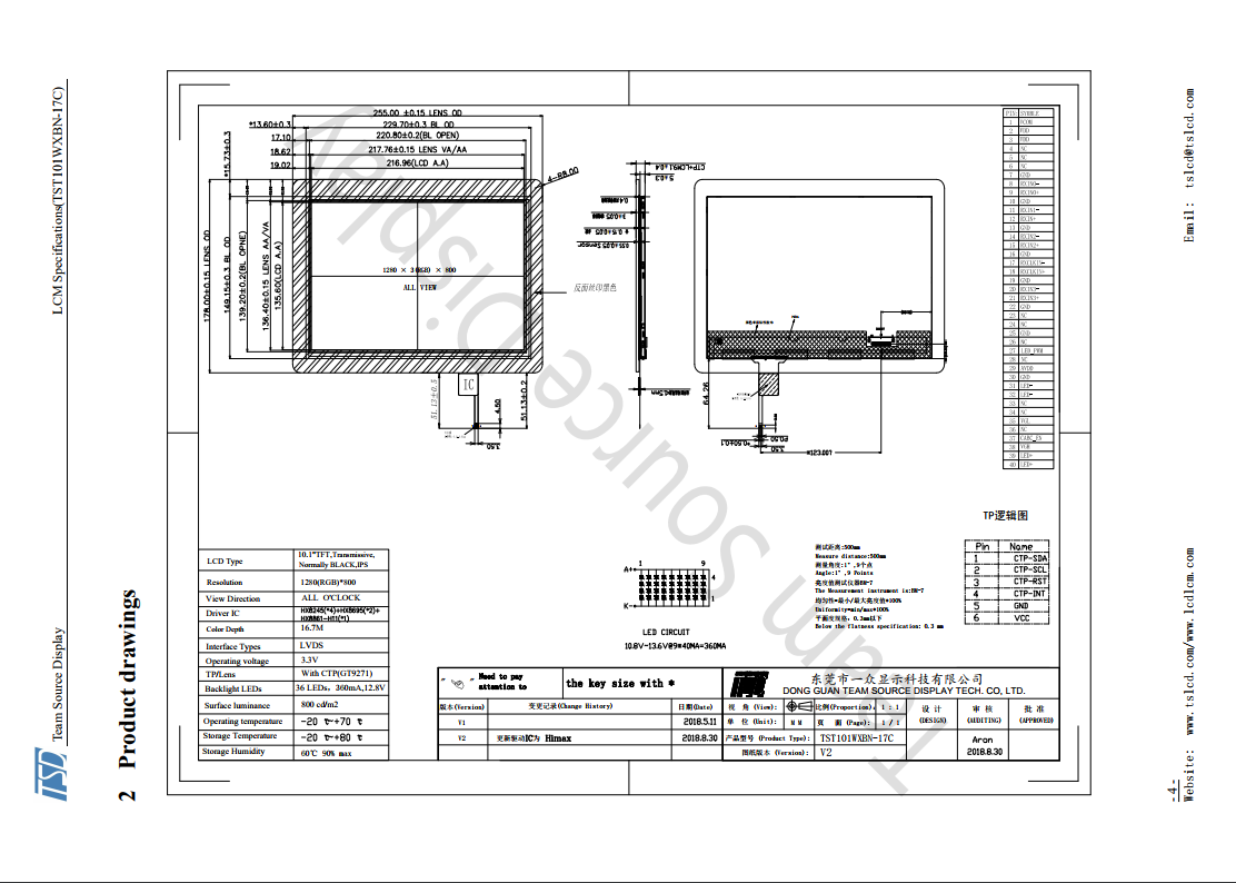 厂家供应 10.1寸电容触控TFT 1280*800 1000亮度 高端智能家居 人机界面 楼宇对讲lcd显示