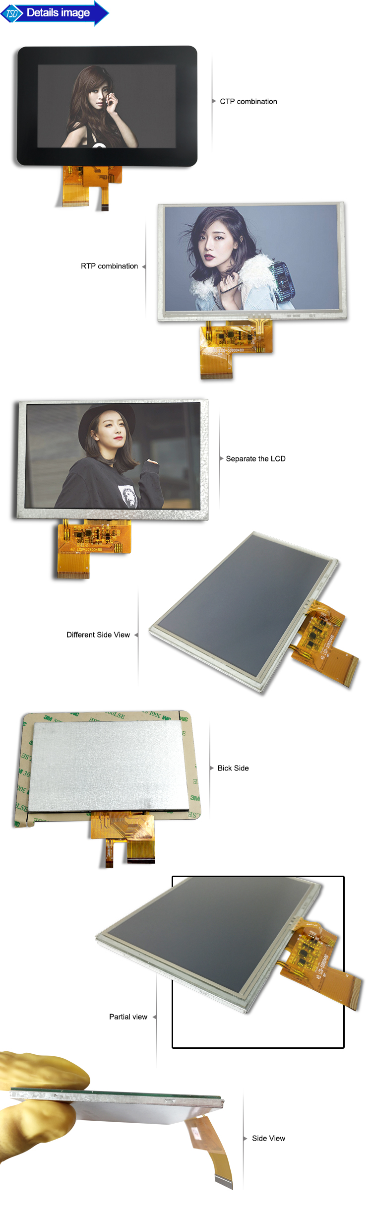 5寸TFT液晶显示屏350nits/500nits/1000nits 三种分辨率可选 有标准RTP和CTP 高亮支持阳光下可读 产品可加ofilm 增加视角 可根据客户要求做AR-防指纹 AF-抗反射 AG-放眩晕效果
