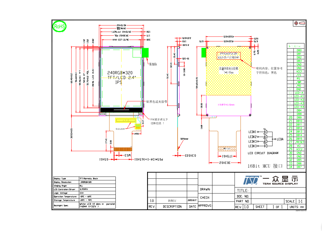 2.4寸IPS液晶显示屏 240*320分辨 全视角 高对比度 智能电气 测试设备用TFT 厂家直销5寸TFT IPS型720*1280可带TP触摸 可定制支持树莓派MIPI液晶显示屏 超宽视角 高清显示 适用于智能电子产品
