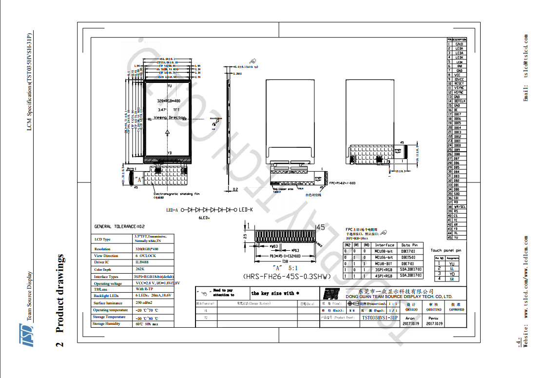 3.5寸240*320 RGB接口 500亮度 带电阻触摸TFT 智能家居 工控设备LCD液晶显示屏下一个: