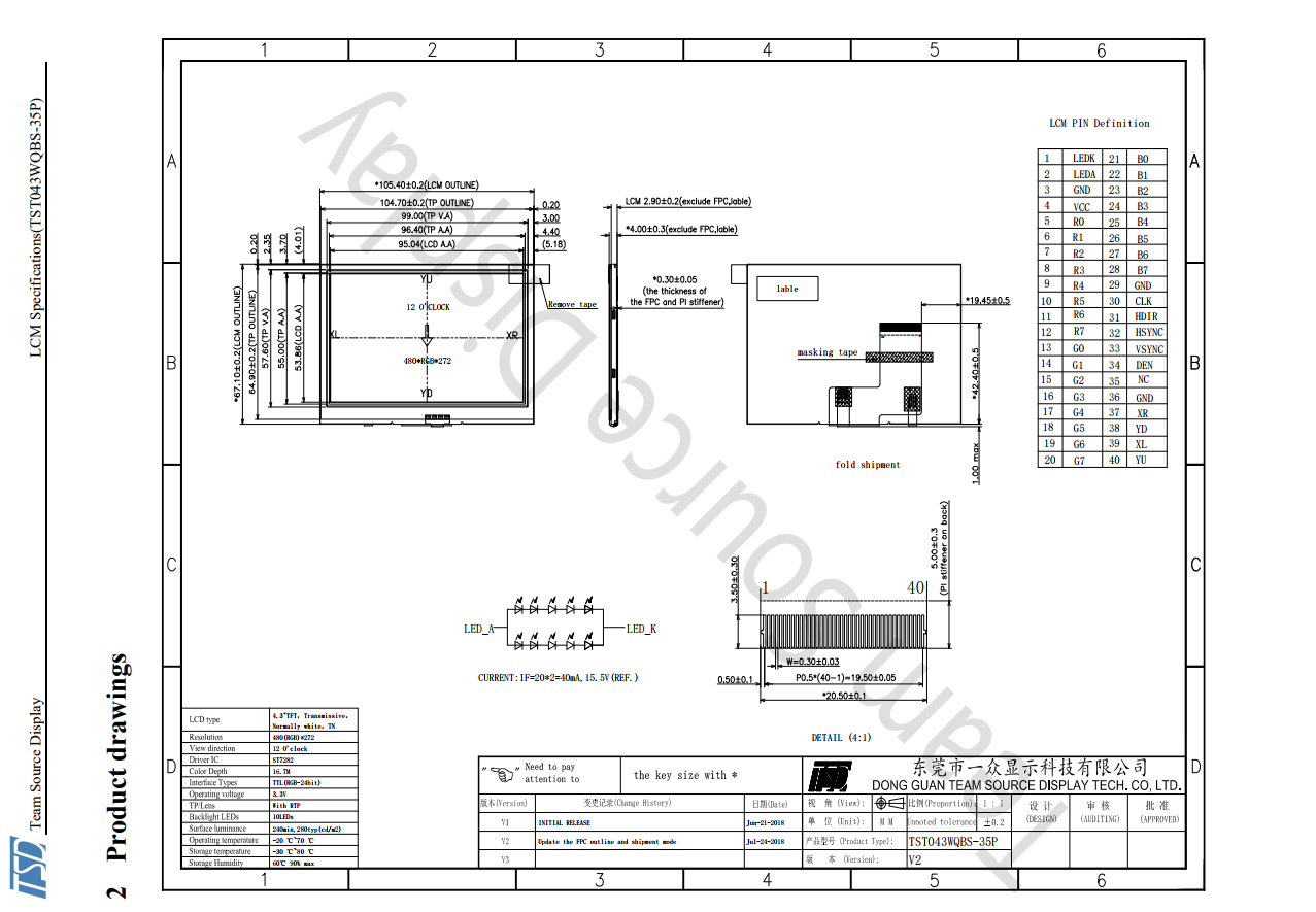 4.3寸480*272分辨率TFT 有350/500/1000 三种亮度 带标准电阻喝电容触摸,40PIN RGB接口 BOE和CMI 玻璃可选 产品高亮度可支持户外可见 新增AR 抗反射工艺 AG 防眩晕功能 和AF防指纹 多运用于高端智能家居 智能手持终端