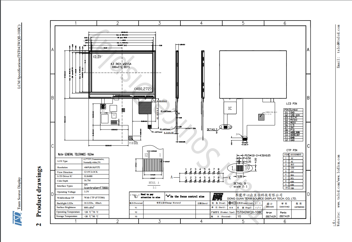 Read More4.3寸480*272分辨率TFT 有350/500/1000 三种亮度 带标准电阻喝电容触摸,40PIN RGB接口 BOE和CMI 玻璃可选 产品高亮度可支持户外可见 新增AR 抗反射工艺 AG 防眩晕功能 和AF防指纹 多运用于高端智能家居 智能手持终端