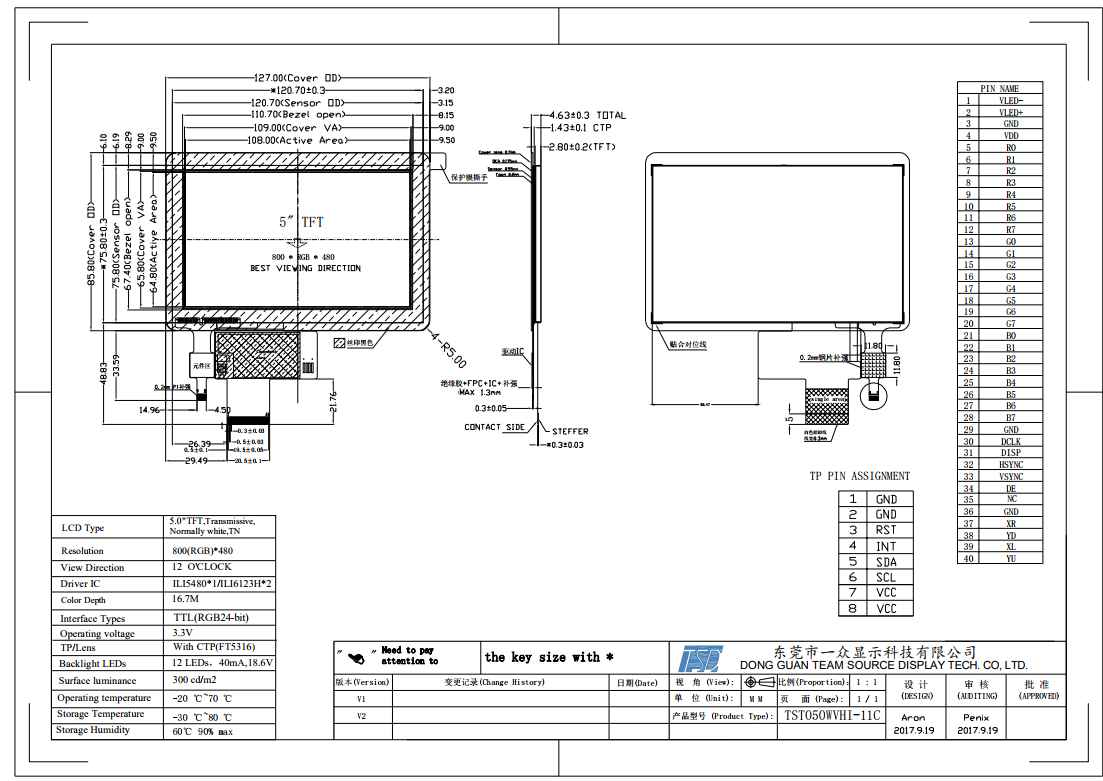 5寸TFT液晶显示屏350nits/500nits/1000nits  三种分辨率可选  有标准RTP和CTP 高亮支持阳光下可读 产品可加ofilm 增加视角 可根据客户要求做AR-防指纹 AF-抗反射 AG-放眩晕效果