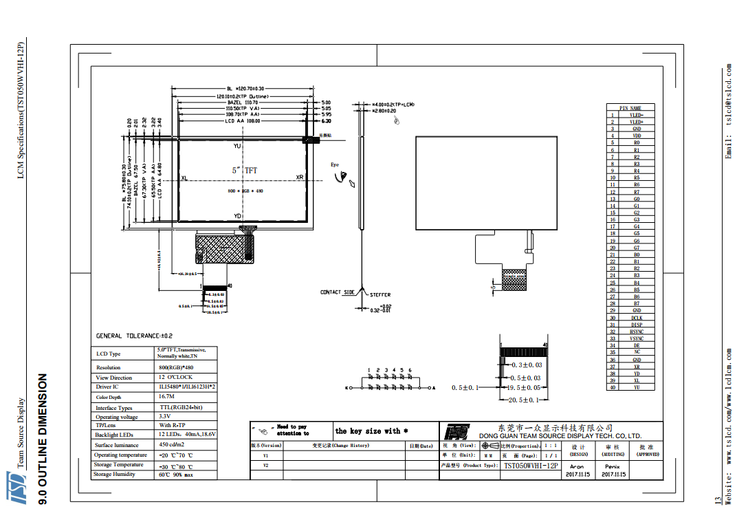 5寸TFT液晶显示屏350nits/500nits/1000nits 三种分辨率可选 有标准RTP和CTP 高亮支持阳光下可读 产品可加ofilm 增加视角 可根据客户要求做AR-防指纹 AF-抗反射 AG-放眩晕效果