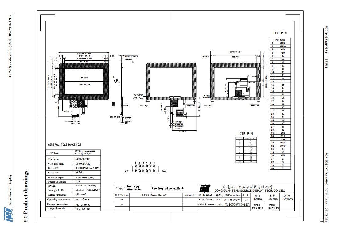 5寸TFT液晶显示屏350nits/500nits/1000nits  三种分辨率可选  有标准RTP和CTP 高亮支持阳光下可读 产品可加ofilm 增加视角 可根据客户要求做AR-防指纹 AF-抗反射 AG-放眩晕效果