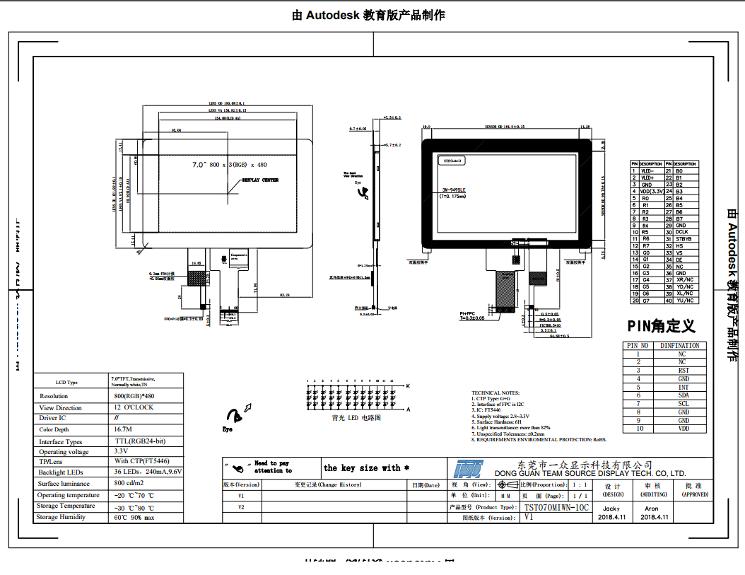 4.3寸480*272分辨率TFT 有350/500/1000 三种亮度 带标准电阻喝电容触摸,40PIN RGB接口 BOE和CMI 玻璃可选 产品高亮度可支持户外可见 新增AR 抗反射工艺 AG 防眩晕功能 和AF防指纹 多运用于高端智能家居 智能手持终端
