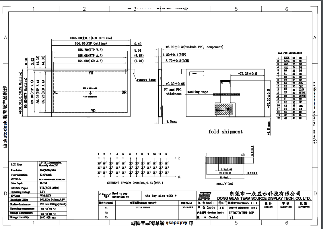 4.3寸480*272分辨率TFT 有350/500/1000 三种亮度 带标准电阻喝电容触摸,40PIN RGB接口 BOE和CMI 玻璃可选 产品高亮度可支持户外可见 新增AR 抗反射工艺 AG 防眩晕功能 和AF防指纹 多运用于高端智能家居 智能手持终端
