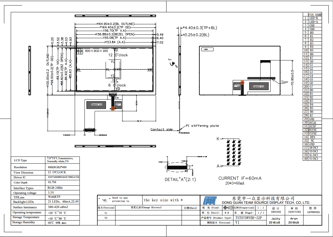 4.3寸480*272分辨率TFT 有350/500/1000 三种亮度 带标准电阻喝电容触摸,40PIN RGB接口 BOE和CMI 玻璃可选 产品高亮度可支持户外可见 新增AR 抗反射工艺 AG 防眩晕功能 和AF防指纹 多运用于高端智能家居 智能手持终端